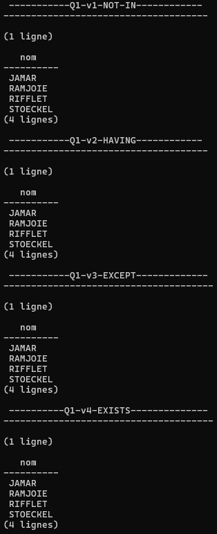 - Projection (π) : Extraction des noms de skieurs ou stations