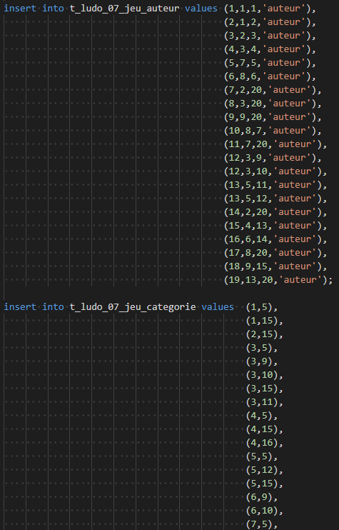 - Tables créées : Auteurs, Jeu, Adherent, Editeur avec toutes les clés primaires et étrangères